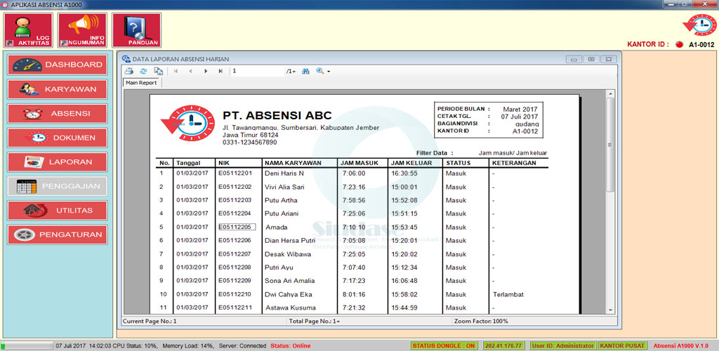Aplikasi Absensi & Penggajian Online A1000