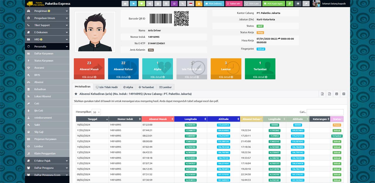 Laporan histori GPS maps absensi per karyawan - laporan gps maps kehadiran per masuk - laporan gps maps kehadiran per keluar - laporan gps maps data failure - laporan gps maps titik lokasi absensi - laporan gps maps per QR code