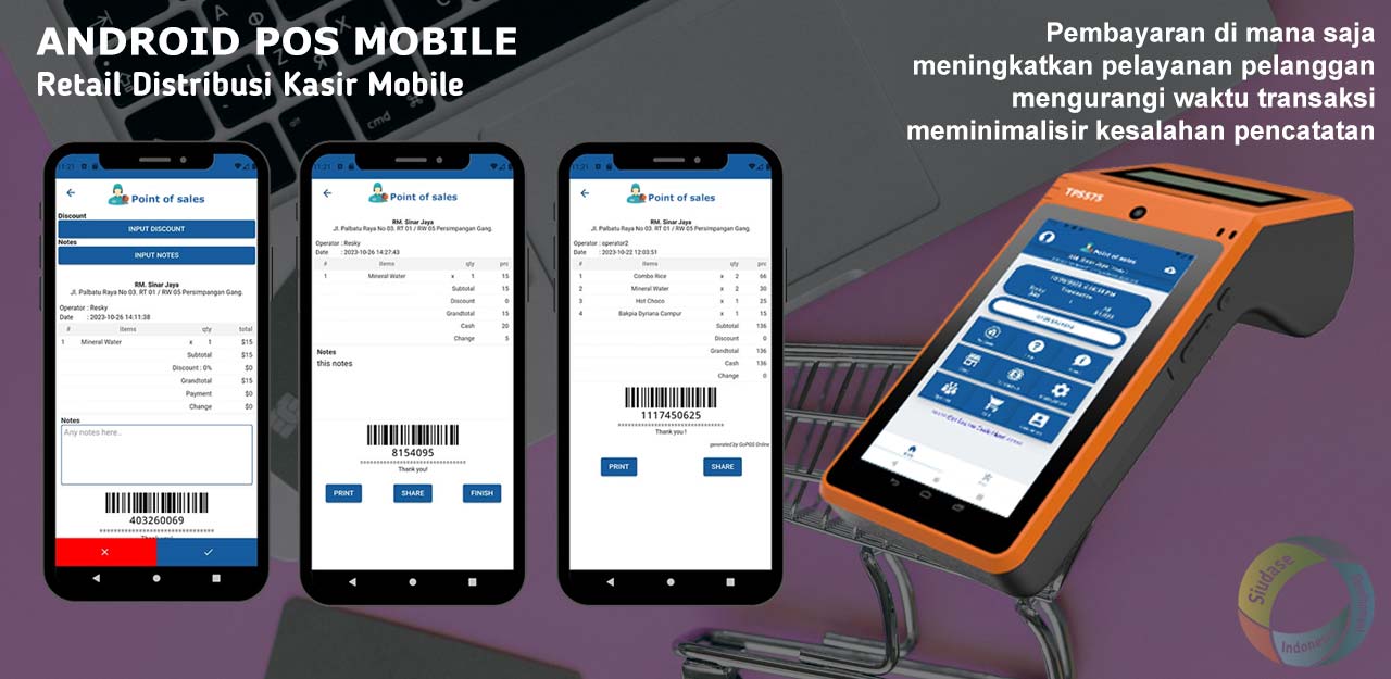 Aplikasi Distribusi atau aplikasi distributor ini telah mendukung untuk bidang usaha sembako, snack, makanan ringan, rokok, obat, beras, retail, bahan bangunan, F&B (Food & Beverage), toko online, hingga jasa pengiriman. Aplikasi POS juga sering digunakan di restoran, cafe, kedai makanan, warung, coffee shop.