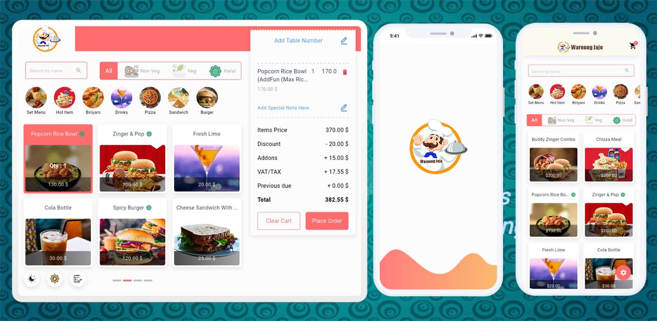 Aplikasi Waroeng Jaje juga dilengkapi dengan layanan aplikasi pada waiter yaitu POS Waroeng Jaje Mobile Tablet Waiter, yang dimana berfungsi sebagai pengganti dengan sistem mencatat dengan manual, sehingga data pemesanan konsumen dapat terkirim secara langsung pada petugas supervisor restaurant yang menerima notifikasi jenis pesanan yang diinginkan oleh konsumen.